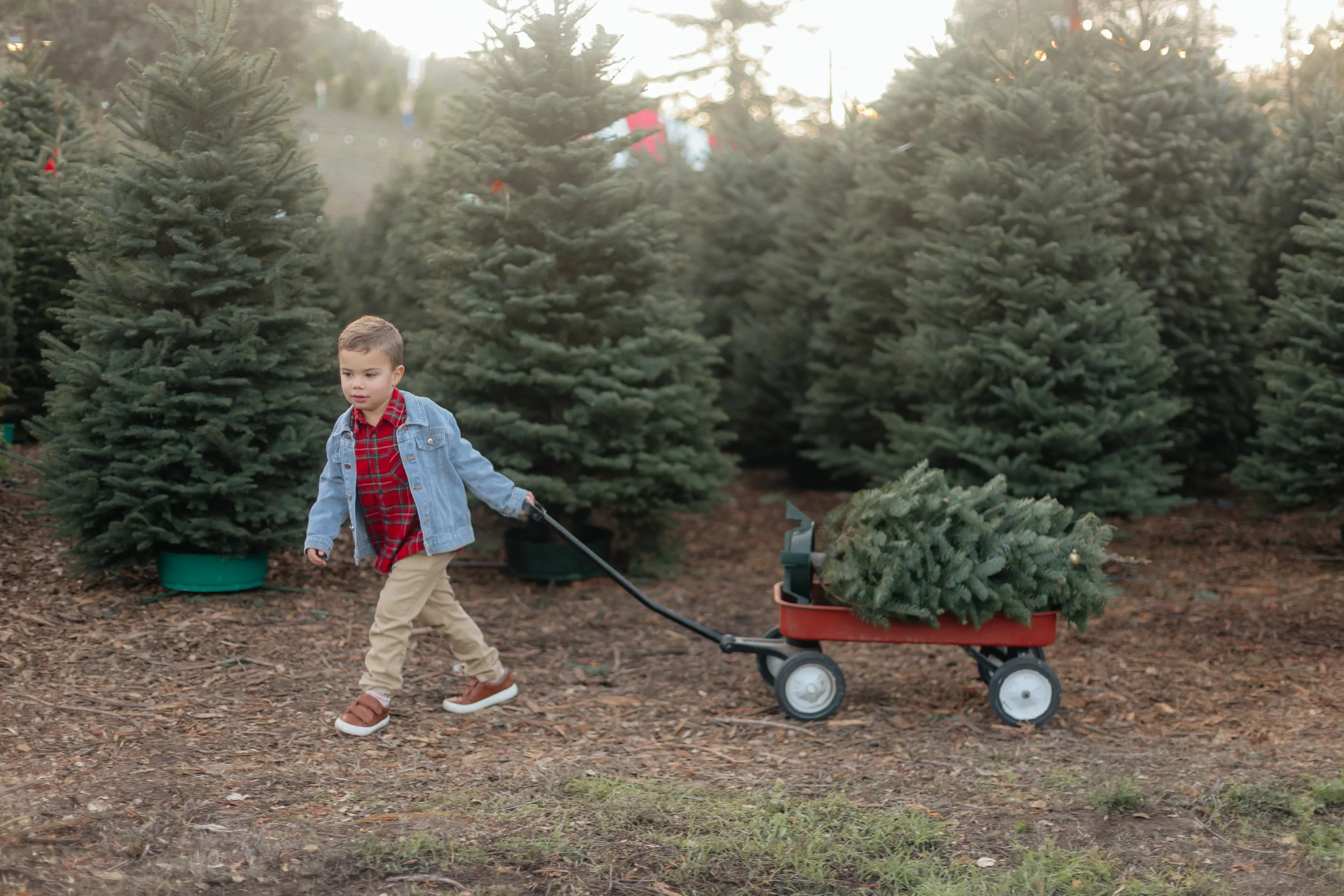 The farm is filled with rows of gorgeous green trees that create the dreamiest setting for holiday portraits. Kids love exploring the pathways, smelling the trees, and getting into the festive mood — which makes for natural, joyful photos every time. Even a simple walk down the middle of the trees creates beautiful, frame-worthy images.
